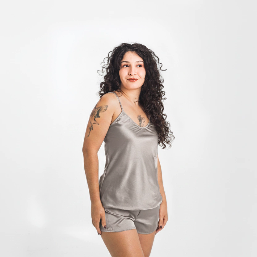 Pijama Short Doll prata – Elegância e Conforto em Cada Noite